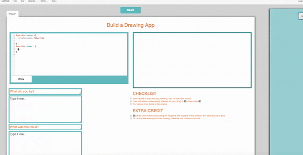 By 8th grade, our CS students were graduating from absolute beginner tools like Scratch and Microbits and entering the world of web development, javascript, python and arduino. As the tools and content became more complex, so did the process of documenting work and supporting the iterative design process. It's hard to promote project based learning when teachers have no way to consolidate all aspects of their lessons and have no clear window into the student’s process. My goal for this platform was to provide a way for teachers to create interactive CS worksheets and for students to work in a framework that mirrors our natural creative process which is not linear, but a web of trials and errors.